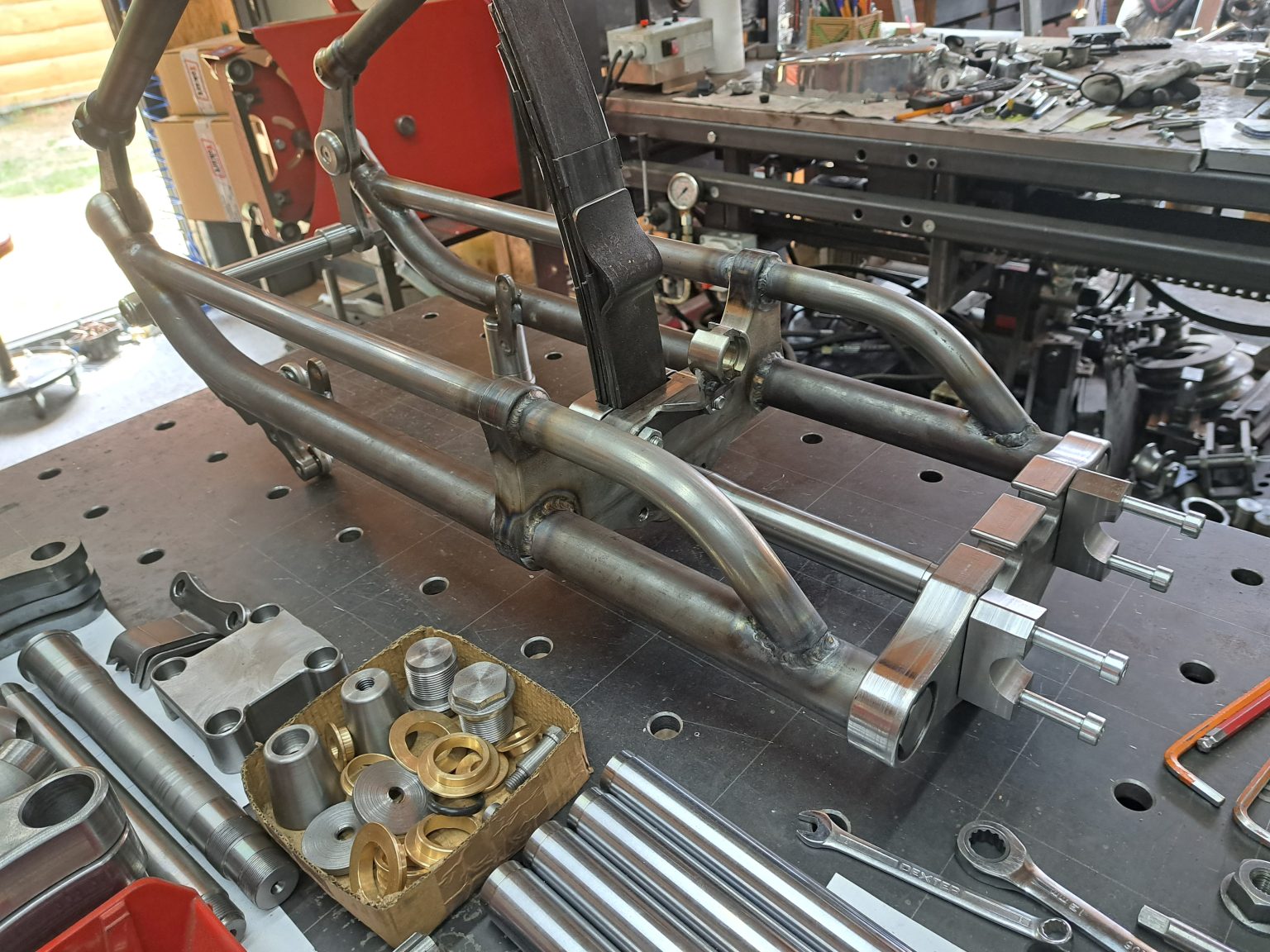 Wykonane z wysokiej jakości materiałów, lagi główne wykonane z rury grubościennej 35mm średnicy, półki mają 23mm grubości, wahacze wykonane są z blachy 12mm łożyskowane na panewkach z brązu, mocowanie hamulca również łożyskowane na panewkach, wszystkie ośki , swożnie wykonane ze stali hartowanej 38 HRC, dźwignie do pióra wykonane z rury grubościennej 25mm, masa zawieszenia 21 kg.